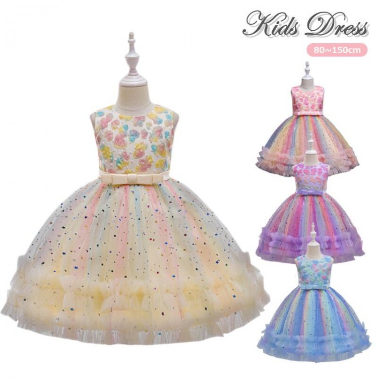 ドレス 4色 子供 ピアノ発表会 子供 キッズ ベビー マタニティ 続々入荷中 ピンク パープル ブルー シャンパン 80 90 100 110 120 130 140 150