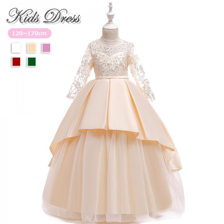 ドレス 5色 子供 ピアノ発表会 子供 キッズ ドレス 早い者勝ち ピンク シャンパン グリーン ホワイト レッド 120 130 140 150 160 170