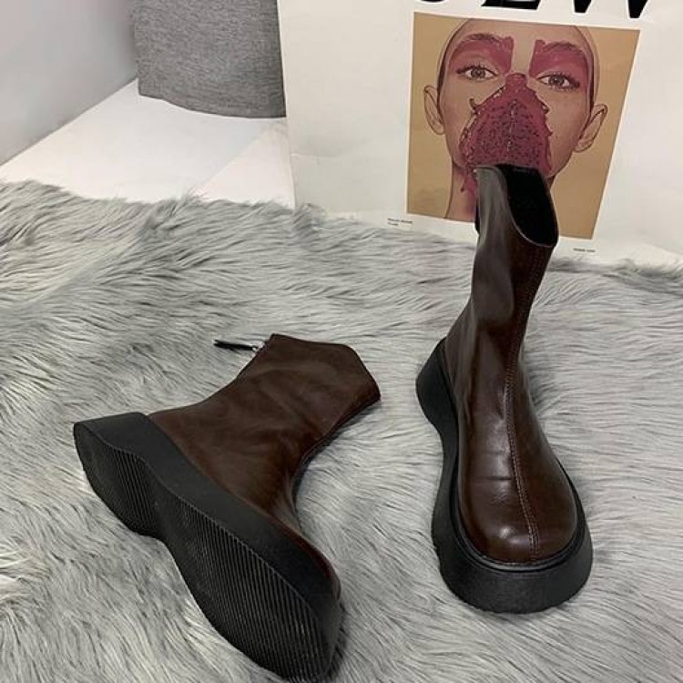 ショートブーツ 5cmヒール 厚底 ラ レディース靴 ブーティ 新登場! ブラック ブラウン 22.5cm 23.0cm 23.5cm 24.0cm 24.5cm