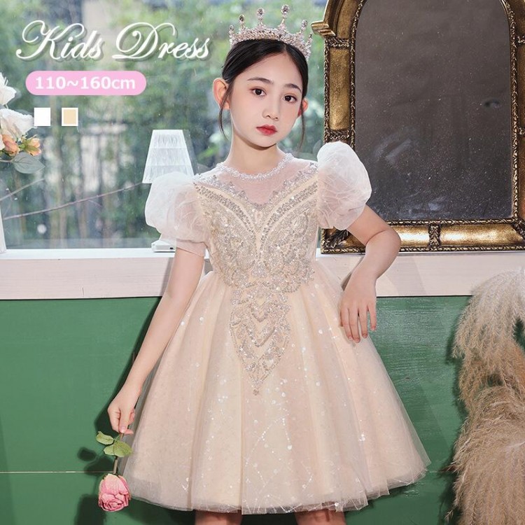 ドレス 2色 子供 ピアノ発表会 子供 キッズ ベビー マタニティ 早い者勝ち シャンパン ホワイト 110 120 130 140 150 160