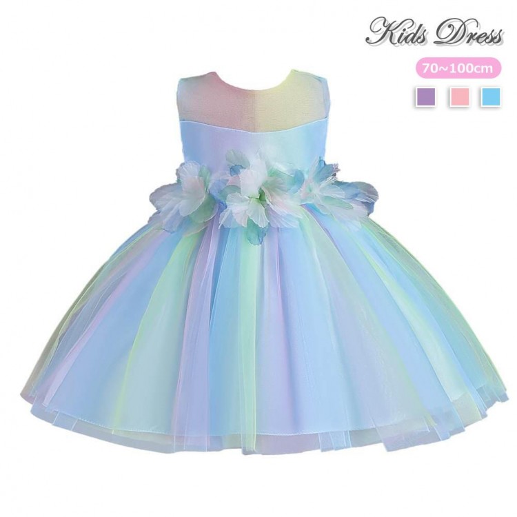 ドレス 3色 子供 ベビー 子供ドレス キッズ ドレス 続々入荷中 パープル ピンク ブルー 70 80 90 100