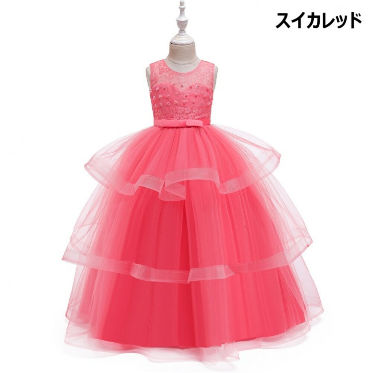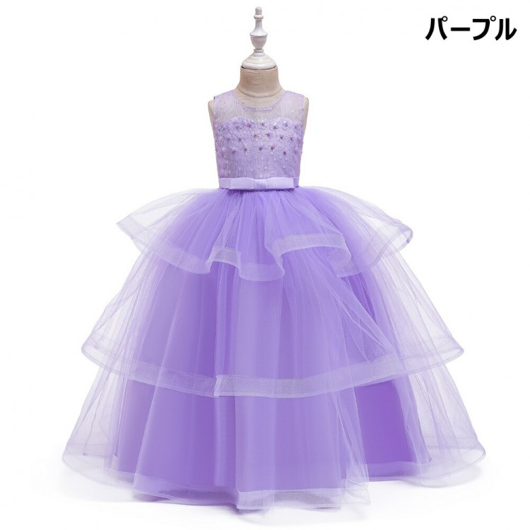 ドレス 4色 子供 ピアノ発表会 子供 キッズ ドレス 新作 パープル スイカレッド ピンク ブルー 120 130 140 150 160 170