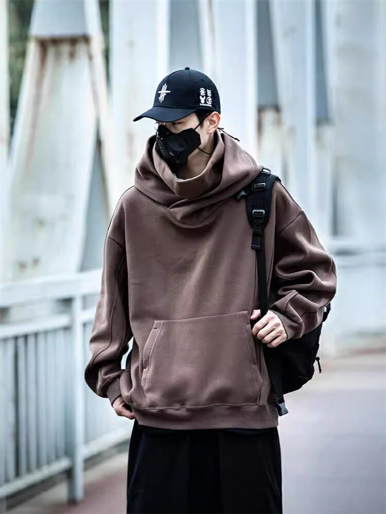 ボリュームネックパーカー 忍者パーカー トップス スウェット トレーナー 新作 グレー ブラック ブラウン M L XL 2XL