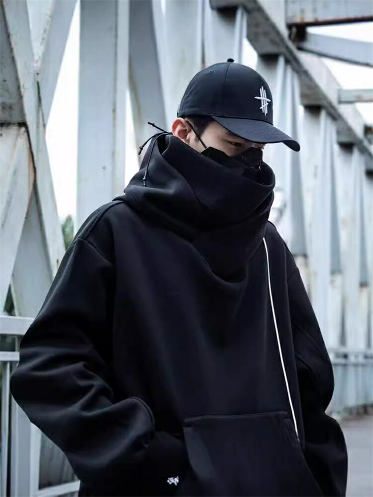 このフード付きスパーカーを着て街を歩けば、とても安心感があります!大きなフードと二重のハイネックで顔を隠せるので、街中でも誰にも気づかれません