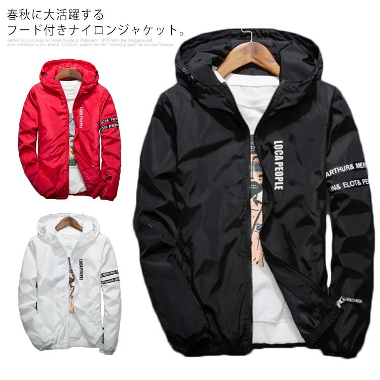 メンズ マウンテンパーカー ブルゾン アウター トップス フード付き 無地 ジャンパー マウンテンジャケット シェルパーカー ライトアウター アウトドア ストリート 薄手 カジュアル