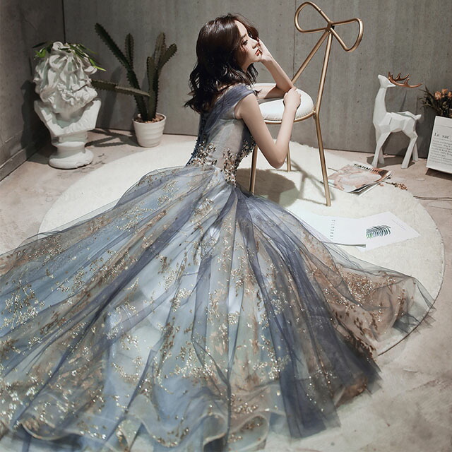 イブニングドレス スパンコール キラキラ ロングドレス チュール 演奏会ドレス ノースリーブ 発表会ドレス パーティードレス 二次会ドレス お呼ばれドレス キレイめ
