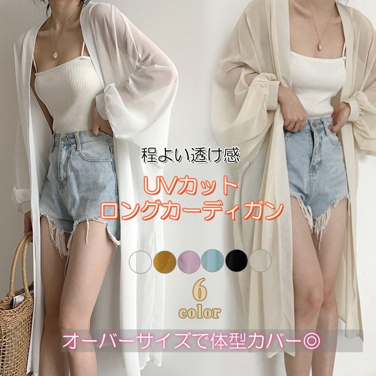 紫外線対策に最適なカットロングカーディガン!薄手で軽やかな着心地、透け感のあるオーバーサイズデザインが魅力。春夏