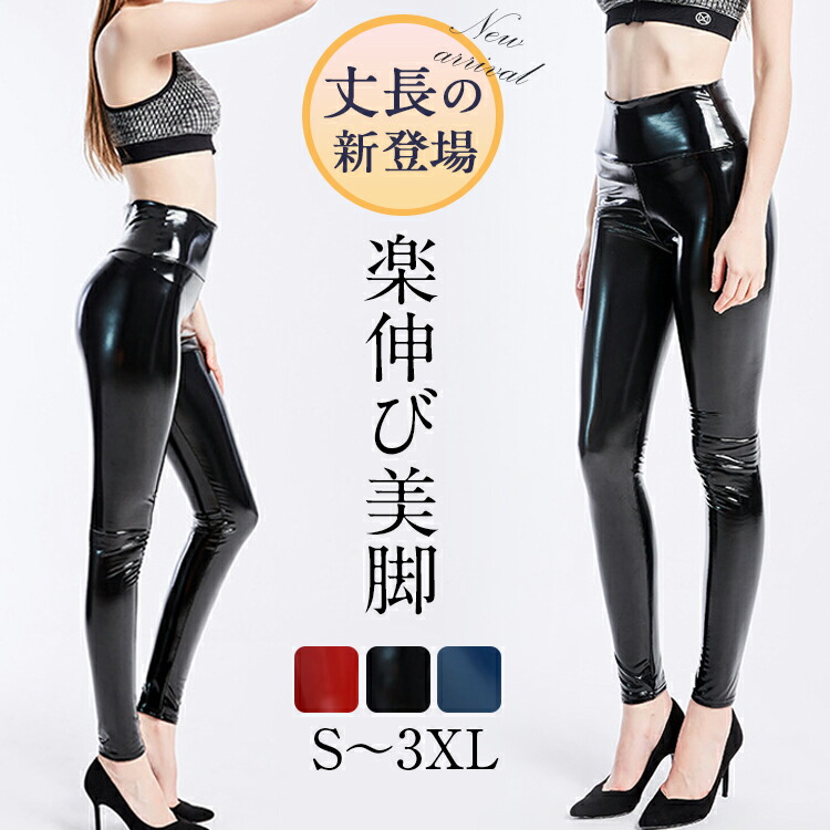 エナメルパンツ レザーパンツ 光沢パンツ レギンスパンツ フェイクレザー レディースレギパン パンツ 美脚 セクシー