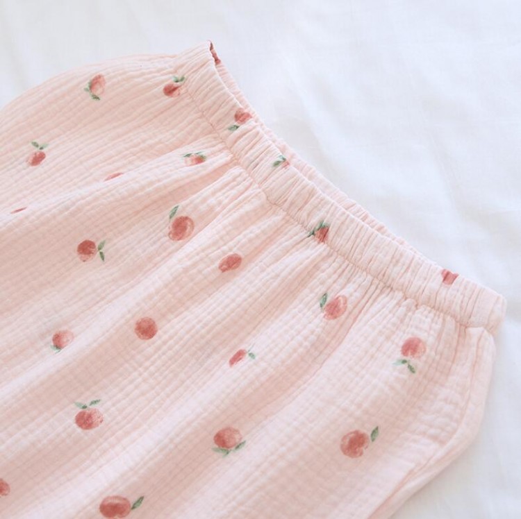 レディースパジャマ ガーゼパジャマ 部屋着 コットン ピーチ柄 ルームウェア 柔らかい ナイトウエア 冷房対策 コットン