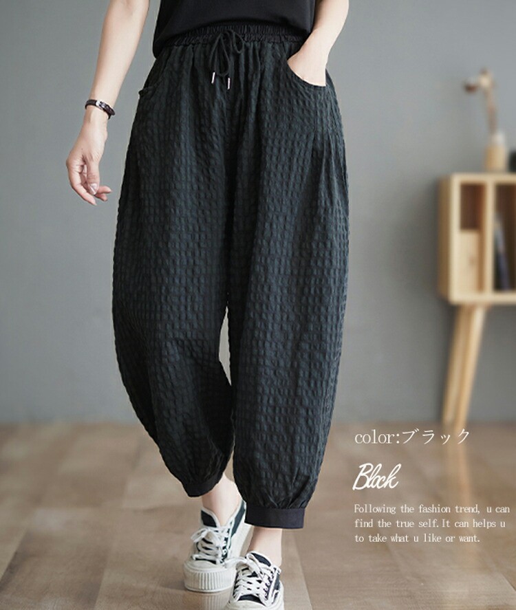 バルーンパンツ レディース チェック パンツ 春 夏 夏物 ロングパンツ 遮熱 通気性 涼しい 快適 コクーンパンツ 大人