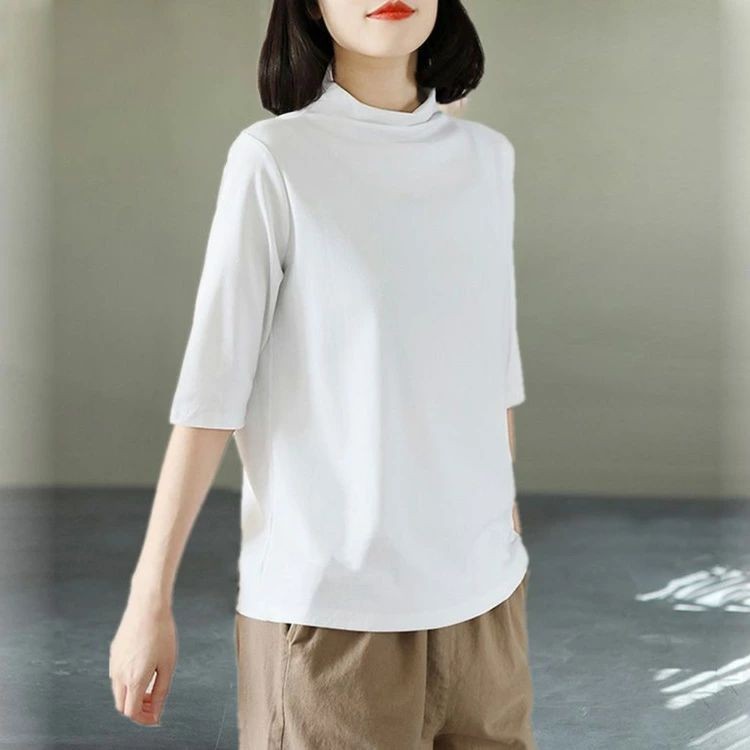 ハイネック 首元保護 半袖シャツ カットソー スリム 薄手 春夏
