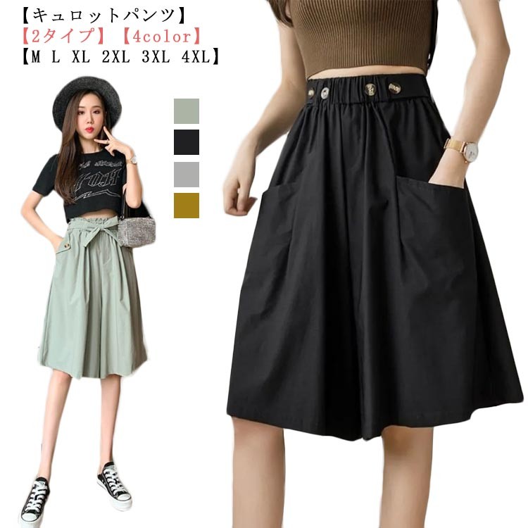 レディース ショートパンツ カジュアル キュロットパンツ 2タイプ ゆったり 薄手 膝丈 ウエストリボン Aライン ガウチョパンツ スカーチョ 春 夏 ハーフパンツ ハイウエスト 短パン 大