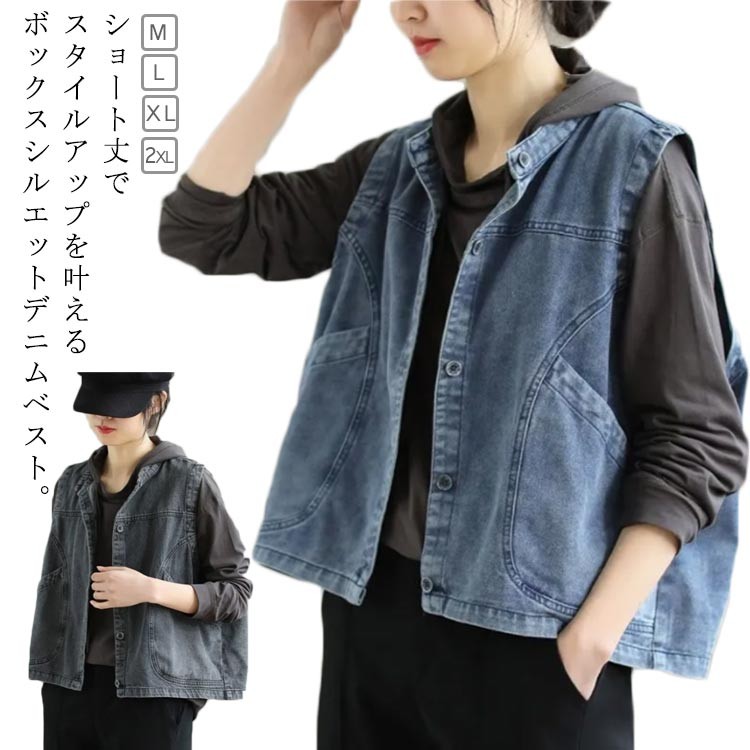 デニム ベスト ジレ レディース デニムベスト トップス ノースリーブ ジャケット 重ね着 レイヤード ショート丈 コンパクト ゆったり 羽織り 春 デニムジャケット ライトアウター