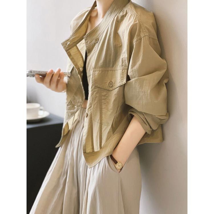 韓 レディース ミッド カジュアル 薄手 ブラック 24 ジャケット