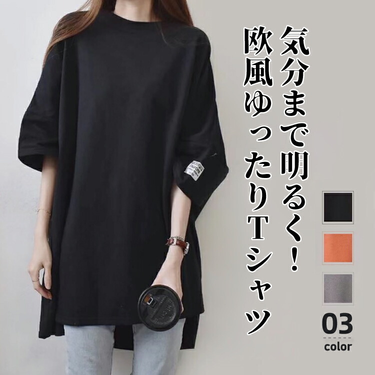 レディース Tシャツ ロング丈 大人 大きいサイズ 半袖 英字 欧風 カジュアル 夏用 トップス ゆったり シルエット お尻が隠れる 体型カバー 20代 30代 40代 通勤 おしゃれ ファ かわいい