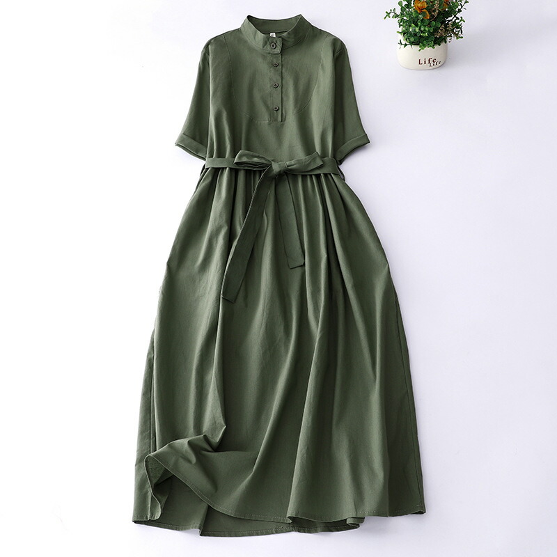 ワンピース ヴィンテージ カジュアル 夏ワンピ 半袖 軽量 ゆったり 文芸風 シルエット 体型カバー おしゃれ 可愛い ファション 無地 人気 装飾ボタン付き 日常 旅行 プレゼント 通気性抜群