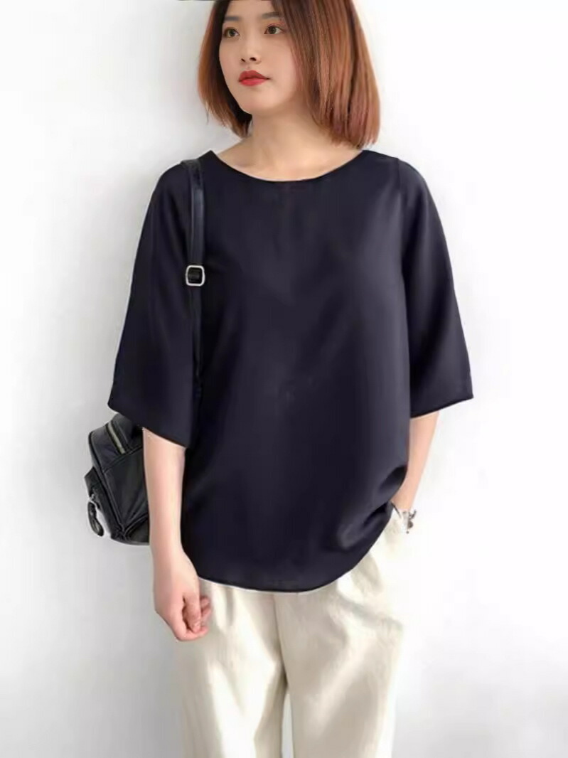 おしゃれ 袖あり かっこいい 大人可愛い レトロ かわいい シンプル 上品 大人 ラウンドネック カットソー Tシャツ 襟なし ボーイッシュ プルオーバー 個性的 無地 きれいめ トップス
