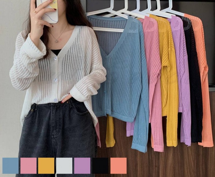 シアーカーディガン 長袖 サマーニット ボタン フリーサイズ ニットパーカー 紫外線対策 日よけ防止 Vネック 無地 夏 カジュアル ニットカーディガン 羽織 薄手 冷房対策 前開き