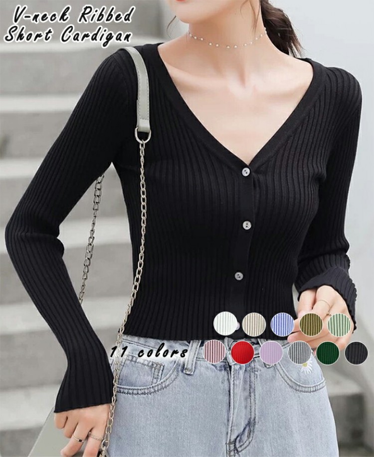 1B26 Vネックリブ編みショートカーディガン UV対策 冷房対策 秋新作 リブニット 綿レーヨン オフィス ロングレディースバーゲン シンプル ウォッシャブル 洗える