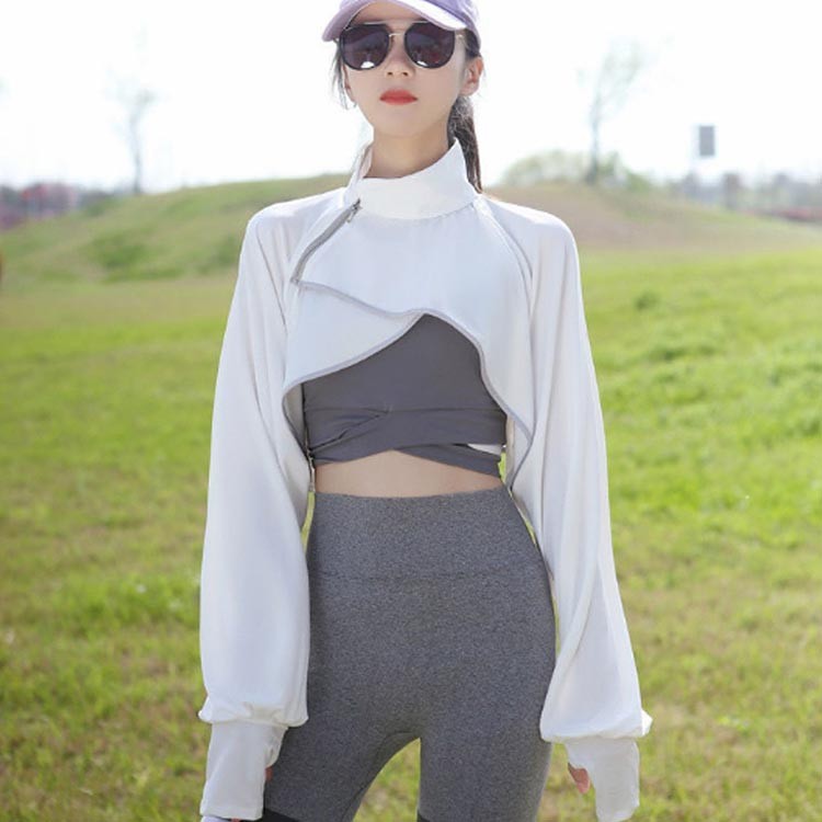 ハイネック 長袖カットパーカー ショート丈 着?せ 体型カバー 薄手