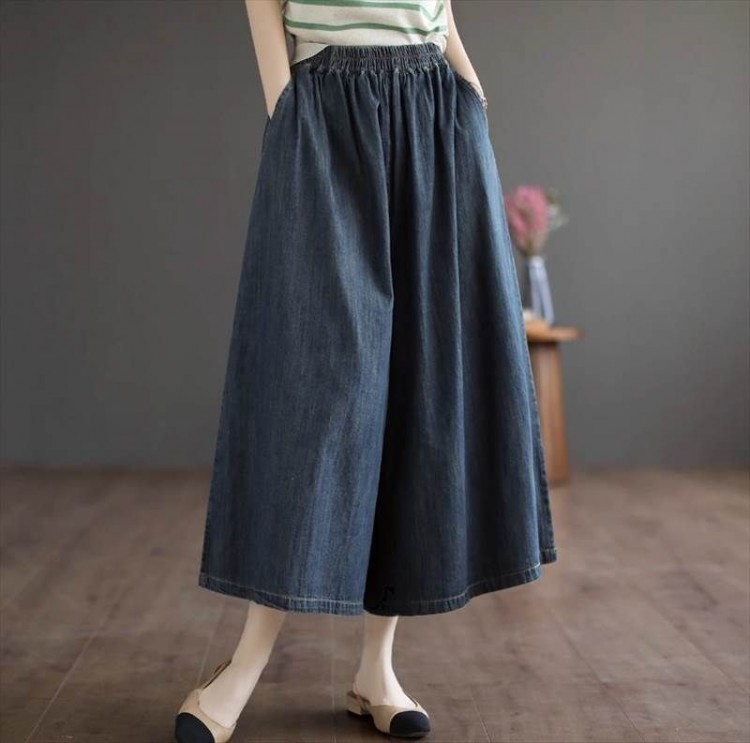 大人可愛い かわいい 秋 レディース 無地 カラーデニム おしゃれ ガウチョパンツ ワイドパンツ ブルーデニム ハイウエスト デニム 夏 休日 きれいめ パンツ レトロ お出かけ かっこいい