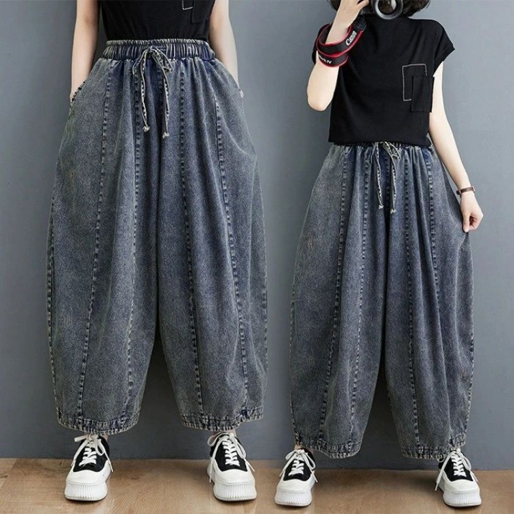ジーンズ デニムパンツ レディース ボトム パンツ ジーパン サルエルパンツ ストレッチ ハイウエスト ゆったり 九分丈 弾力 美脚 薄手 春夏 カジュアル S M L 4XL 3XL 2XL XL