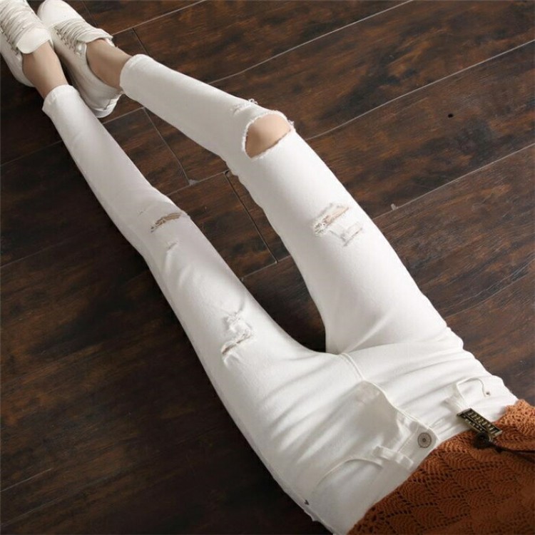 レディース スキニー パンツ ストレッチ ダメージ ジーンズ ロング丈 レギンス ボトムス トレンド 通勤用 仕事 カジュアル お出かけ お洒落 ハイウエスト シンプル 黒 無地 脚長