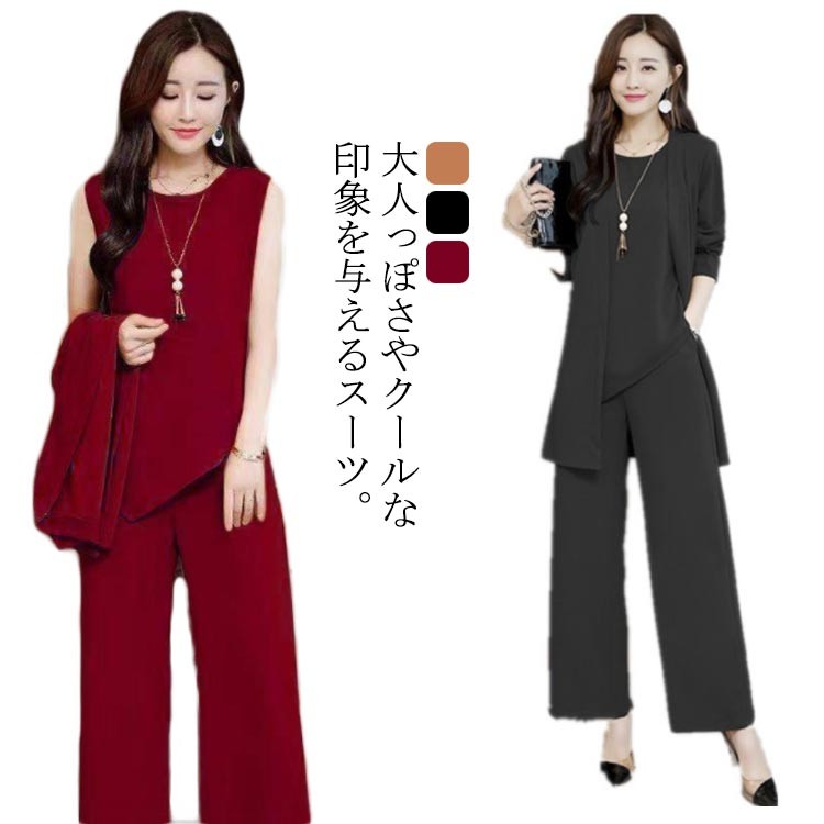 体型カバー 母親 レディース セットアップ ママスーツ 3点セット オシャレ ジャケット おしゃれ 着痩せ 通勤 OL キレイめ パンツスタイル 20代 30代 40代 オフィス 2次会 謝恩 50代
