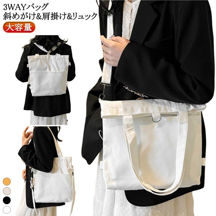 3 トートバッグ 斜め掛け バッグ 男女兼用 バッグ 撥水 防水 大容量 通勤 通学 送料無料 マチ広い ショルダーバッグ 白