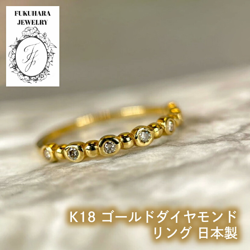 ダイヤモンドリング K18【品質保証書付】地金 リング 指輪 イエローゴールド ゴールド 金 ダイヤ 18金 日本製 普段使い カジュアル かわいい ジュエリー プレゼント パーティーラグジュアリー