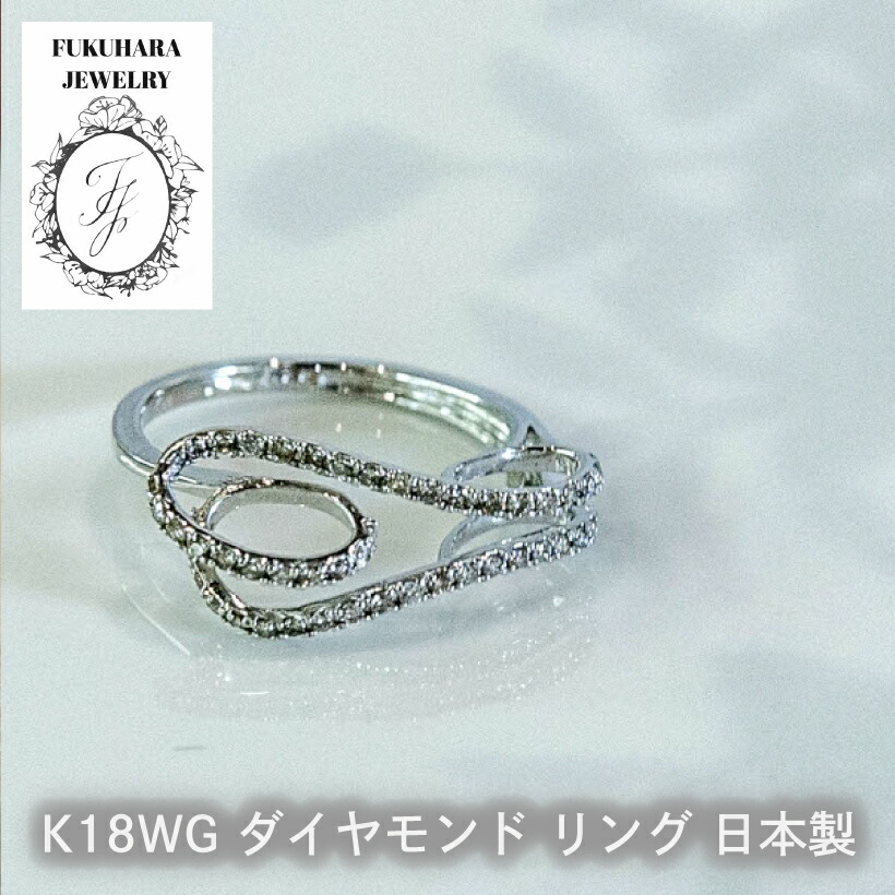 【高品質】ダイヤモンドリング K18【品質保証書付】指輪 ホワイトゴールド 波 金 ダイヤ 18金 日本製 おしゃれ かわいい 存在感 ラグジュアリー ゴージャス 誕生日 母の日 ラッピン プレゼント