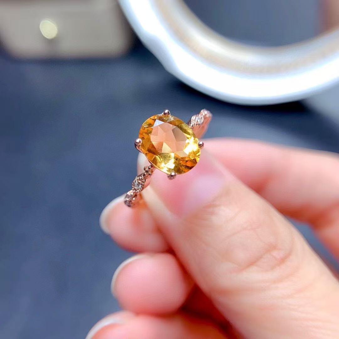 天然シトリンリング18ピンクゴールドコーティングサイズ調整可能ジュエリー アクセサリー レディースジュエリー 指輪 リング