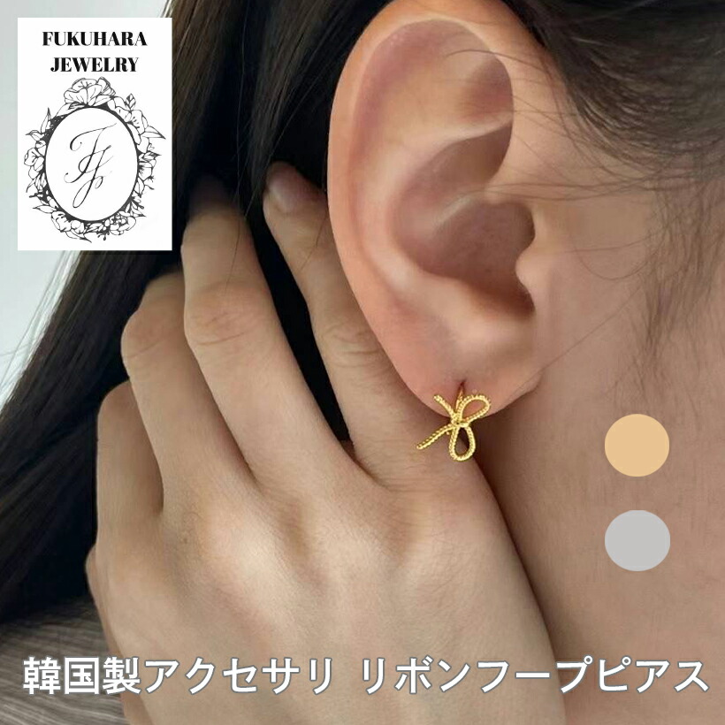 フープピアス リボン おしゃれ かわいい 小ぶり 小さい リボンモチーフ 金属アレルギー対応 ニッケルフリー 個性的 ゴールド シルバー パーティー 女子会 結婚式 プレゼント 誕生日 プチプ ギフト