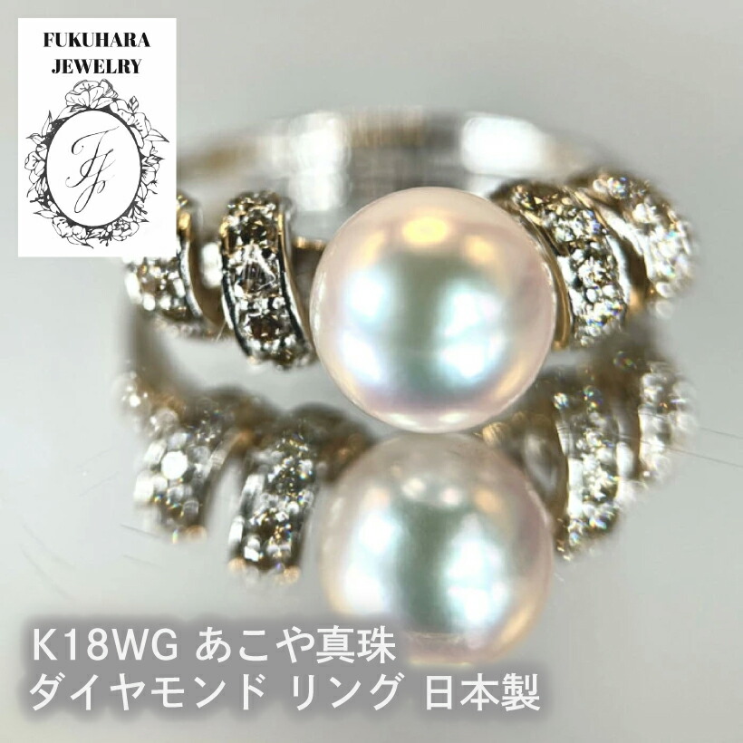 【高品質】あこや真珠 ダイヤモンド リング【品質保証書付】K18 ホワイトゴールド 指輪 ダイヤ 金 18金 日本製 ラグジュアリー ゴージャス 冠婚葬祭 入学式 卒業式 プレゼント 誕生日 母 上質