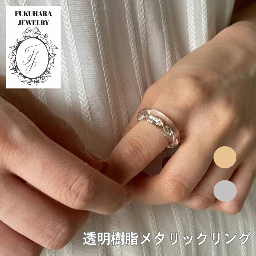 透明樹脂メタリックリング 金属アレルギー対応 存在感 女子力 調整可能 フリーサイズ デイリーリング ゴールド おしゃれ シルバー 大人シンプル 金属アレルギー対応 ニッケルフリー