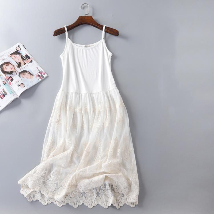 レース ペチコートドレス レディース タンクタイプ 透け防止 下着 裏地付き キャミソールタイプ 切り替え インナーワンピース ペチコート 肌着 異素材 選べる2タイプ 刺繍