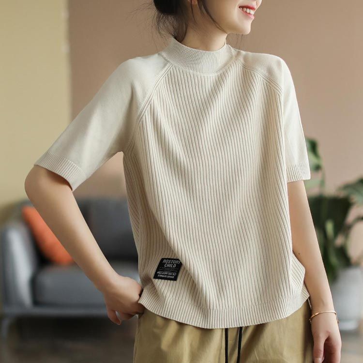 サマーニット レディース カットソー ス シャツ 春 夏 春夏 半袖ニット サマー ニット プルオーバー リブニット 半袖 五分丈袖 無地 フェミニン シンプル カジュア ボートネック