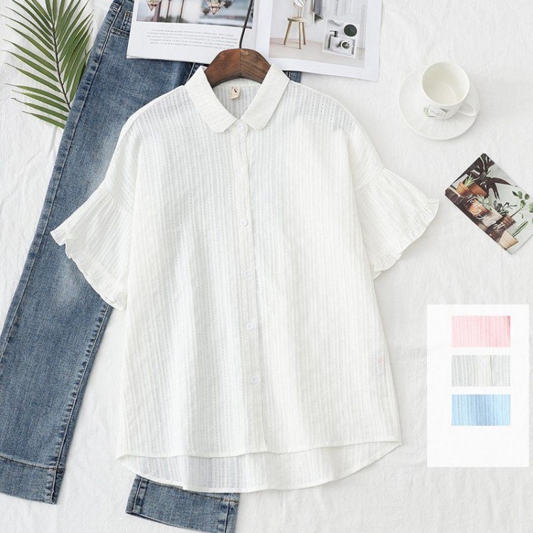 前開き 無地 綿麻 夏 ス 大きいサイズ シンプル春 シャツ 折襟 シャツブブラウス 半袖 ブラウス 秋 レディース コットンリネン フレア