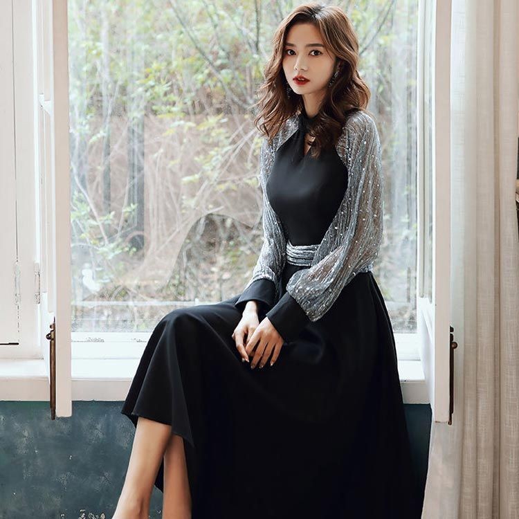 配色 切り替え キラキラ パーティードレス フレアワンピース ロングワンピース 可愛い 結婚式 お呼ばれ 披露会 演奏会 同窓会 成人式 謝恩会 S L XL 2XL M