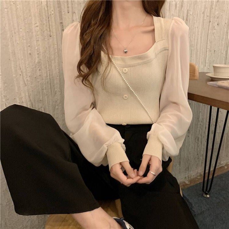 袖あり 大人可愛い シャツ 無地 かわいい ショート丈 20代 シースルー レディース 夏 春 10代 薄手 女子会 ストレート サマーニット デート お出かけ ス 襟付き おし きれいめ
