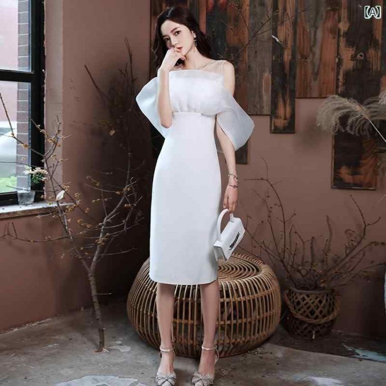 パーティー お洒落 ホワイト ナイトクラブ 結婚式 上品 ミディアム イブニングドレス ロング フレンチ 上質 レディース ドレス ゴージャス ラウンジ ワンピース シンプル クラブ
