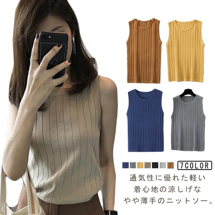 ニット サマーニット ノースリーブ レディース トップス 春 夏 フィット 薄手 リブ 通勤 通学 フリーサイズ オフィス 袖なし 上品 きれいめ 細見え カジュアル インナー 大人