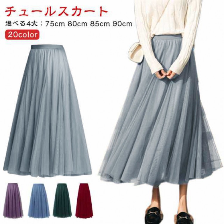 ロング チュールスカート Aライン レディース 春 秋 スカート ボリューム オールシーズン チュール 大人 フレアスカート マキシ丈 ひざ下 ミモレ丈 ふんわり フレア ボトムス ダ