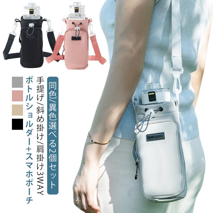 ボトルケース スマホポーチ 水筒 ボトルホルダー 水筒キャリアカバー 大容量 旅行 手提げ 肩掛け 登山 アウトドア カバー