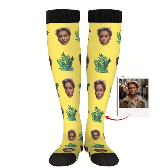カスタムフェイスソックス カスタマイズされた写真付きのパーソナライズされた面白いギフトソックス 顔と雑草のプリント 男性向けの斬新でトレンディなパーティープレゼントソックス
