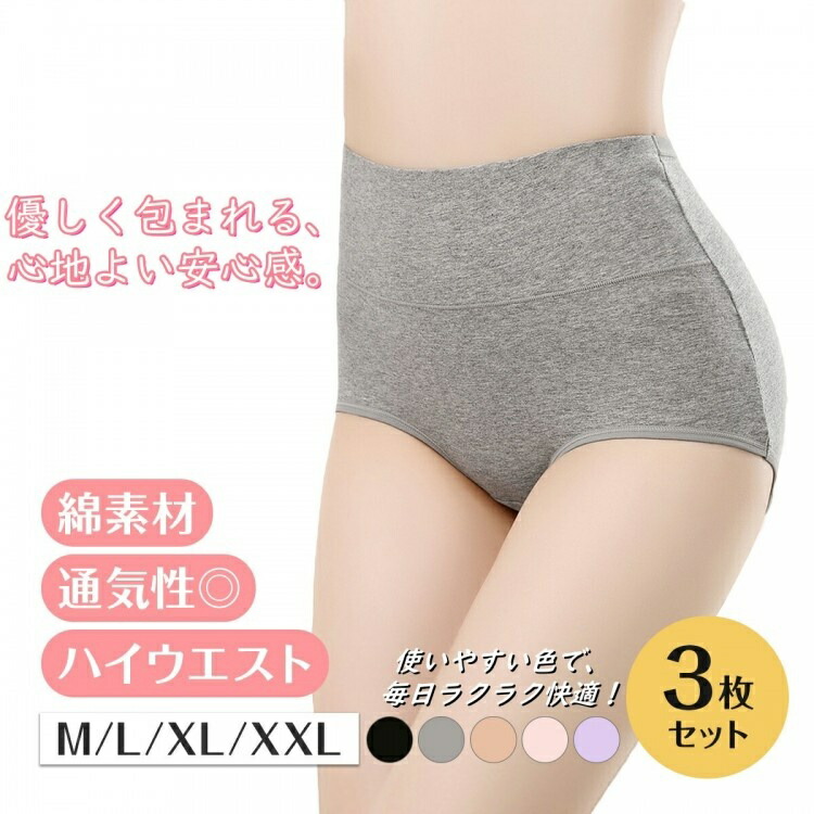 ハイウエスト ショーツ 3枚セット レディース コットン ガードル 温活 下着 綿 深め インナー 快適フィット 桃尻 通気性 伸縮性 シンプル 無地 おしゃれ 深履き 便利 L XL XXL M