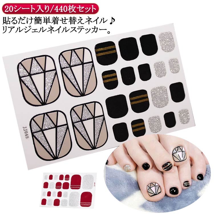 セルフネイル 貼るだけ リアルジェルネイルステッカー ネイルステッカー 20シート入り 440枚セット フットタイプ ジェルネイルシール 北欧 ネイルシール ジェルネイル ネイル 花