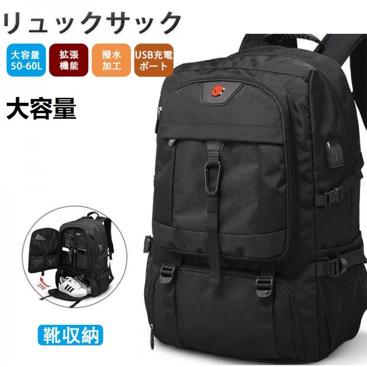 PC リュック 通勤バッグ リュックサック 大容量 50L 60L 拡張機能 ビジネスリュック ラップトップバック バックパック 撥水 USB充電ポート付き 靴収納 アウトドア メンズ 旅行 耐久性