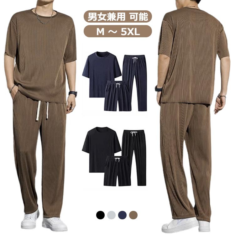 Tシャツ ピリング防止 ペア 涼しい 接触冷感 メンズ 皴ににくい 上下セット セットアップ 2点セット ストレッチ 男女兼用 ルームウェア ロングパンツ ユニセックス さらさら