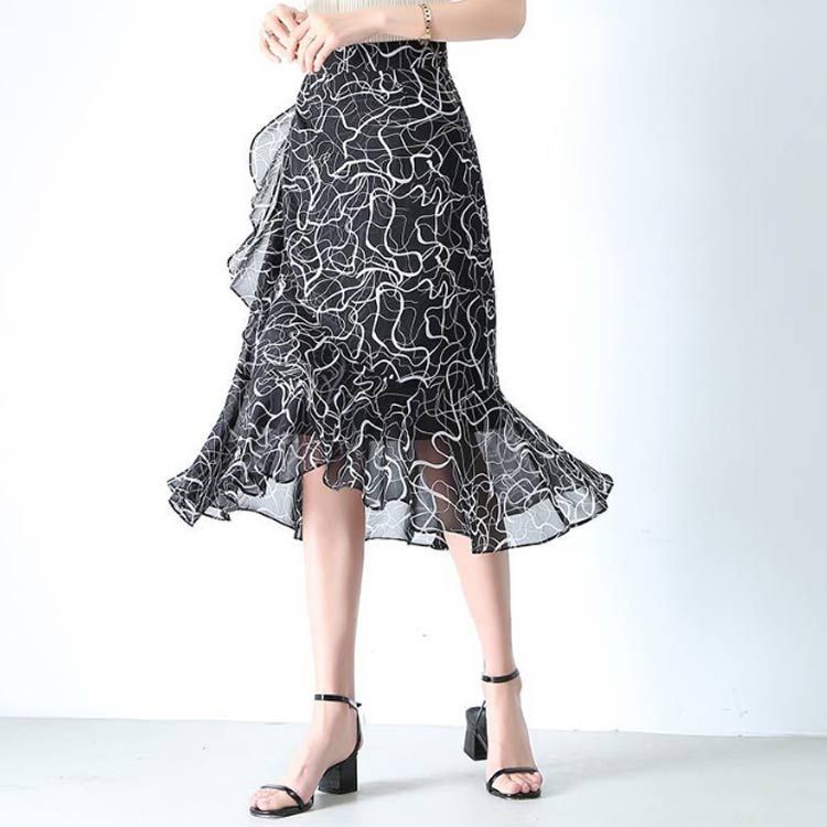レディース マーメイドスカート 通勤 斜めの切り替え オフィス ミモレ丈 ウェストゴム&ファスナー 夏 おしゃれ カジュアル アシメフリル 薄手